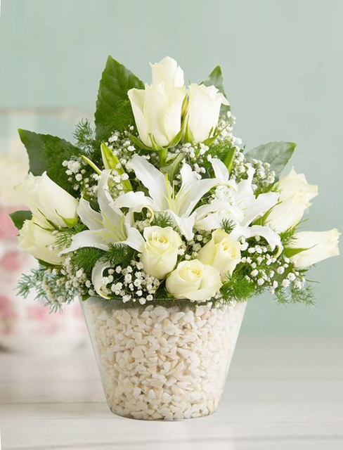 Vazoda 12 Beyaz Gül Lilyum Aranjman